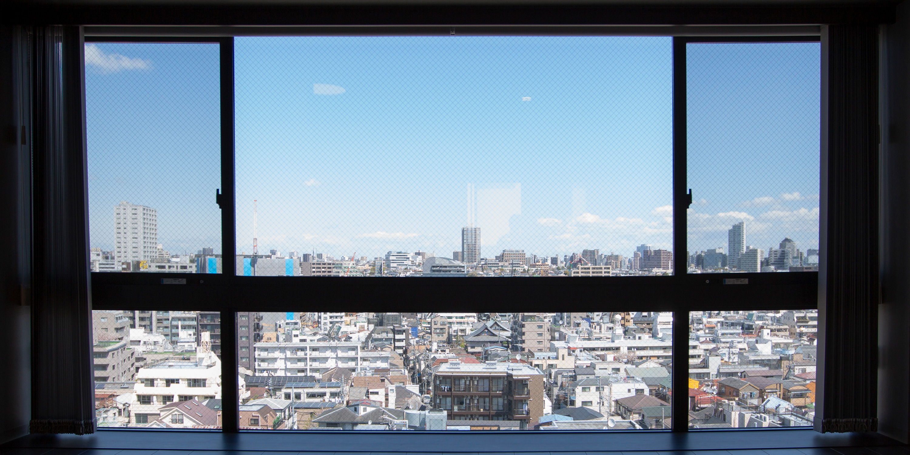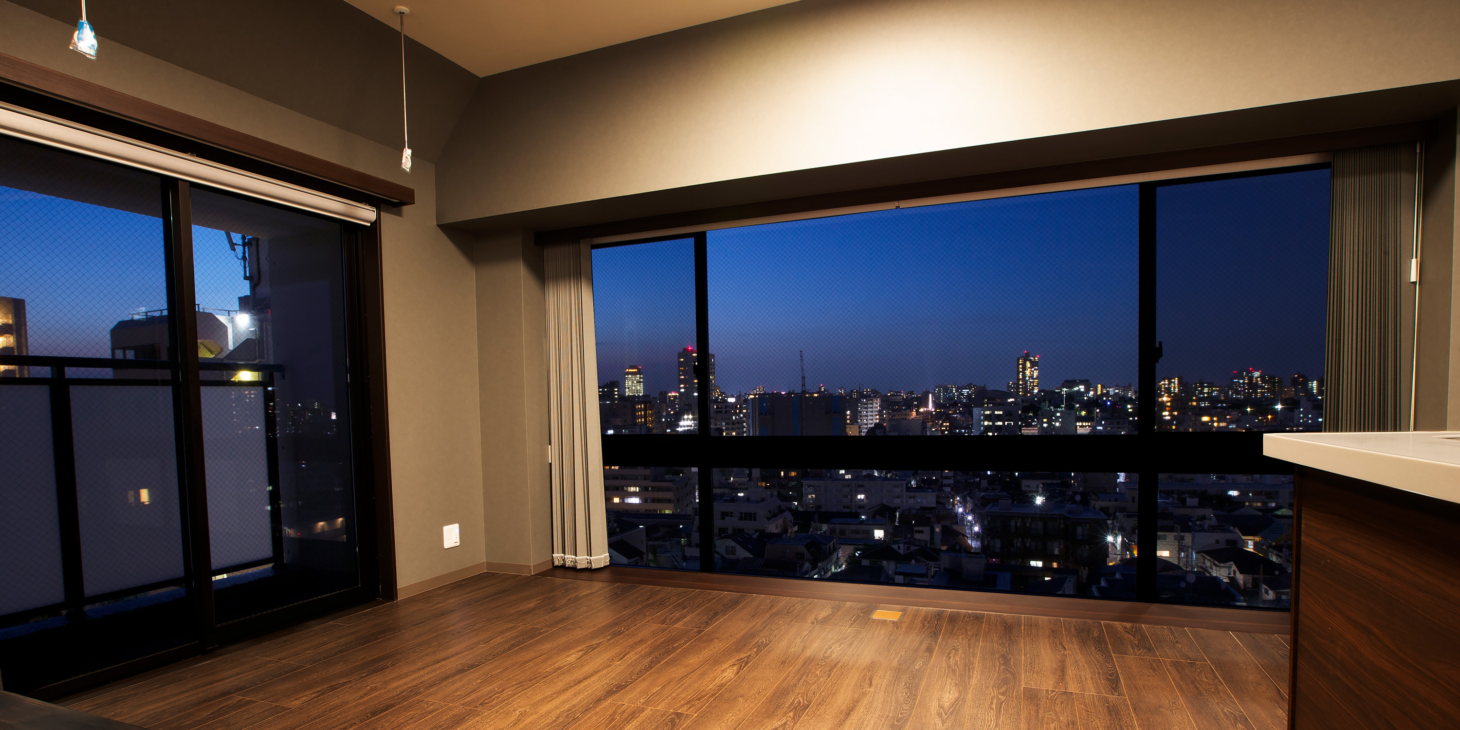 プライバシーにも配慮し、あらかじめバーチカルブラインドとスクリーンカーテンを付けました。